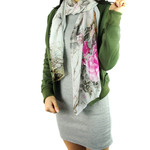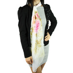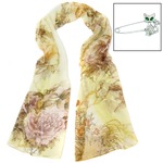 kilofly Floral Scarf is an up-to-the-minute feminine accessory for all seasons. It combines the China roses and peony blossoms print with colorful flowers on light background for a truly eye-catching effect. Comes with a lovely rhinestones mounted safety brooch pin adorned with a cute green eye cat, adding a stylish, delightful touch on your outfit!