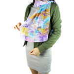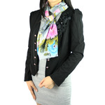 kilofly Small Floral Scarf is an up-to-the-minute accessory for all seasons. It combines various colorful flowers print on light background for a truly eye-catching effect. Comes with a lovely rhinestones mounted safty brooch pin adorned with a cute green eye cat, adding a stylish, delightful touch on your outfit!