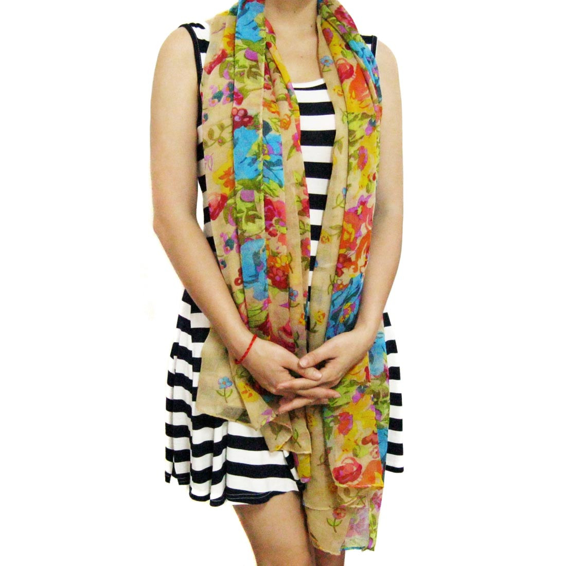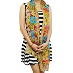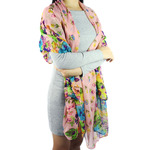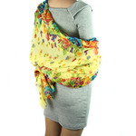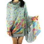 kilofly Large Floral Scarf is an up-to-the-minute accessory for all seasons, it combines various colorful tiny flora print in two tufts at each edge for a truly eye-catching effect. Comes with a lovely rhinestones mounted safty brooch pin adorned with a cute green eye cat, adding a stylish, delightful touch on your outfit!