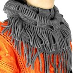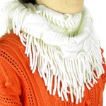 kilofly Knit Infinity Neck Warmer Tassels Scarf is an up-to-the-minute accessory knitted in wavy design with soft, skin-friendly, stretch and comfortable acrylic yarn. Great for wearing in fall and winter seasons to keep your neck warm; more than a neck warner, its infinity design allows you wear it in one large loop, two crossed loops, or as a shawl, while matching most of your outfits in different fashion styles. Comes with a lovely rhinestones mounted safety brooch pin adorned with a cute green eye cat, adding a stylish, delightful touch on your outfit!