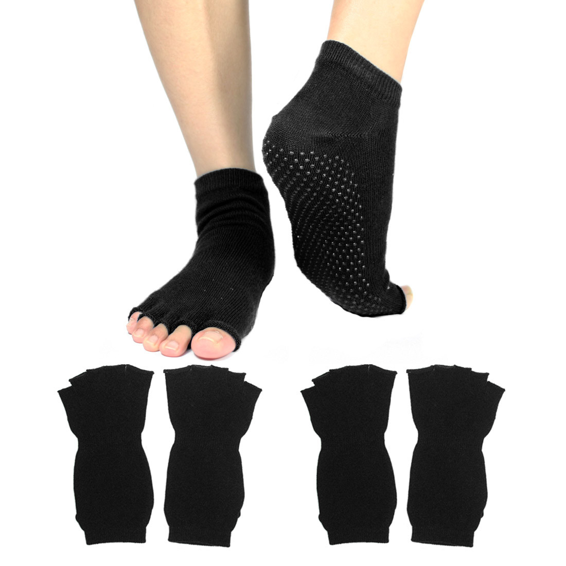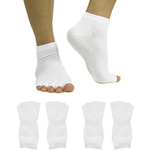 kilofly Non-skid Half Toe Cotton Yoga Socks feature a soft flexible outsole with non-skid dots. Great for women while doing yoga, Pilates, dance and martial arts, as well as any other barefoot activity, assuring the safety, warm and comfort. The five-half-toe design promotes toe strength and flexibility by allowing the independent movement of your toes. This value pack comes with 2 pairs in blue.