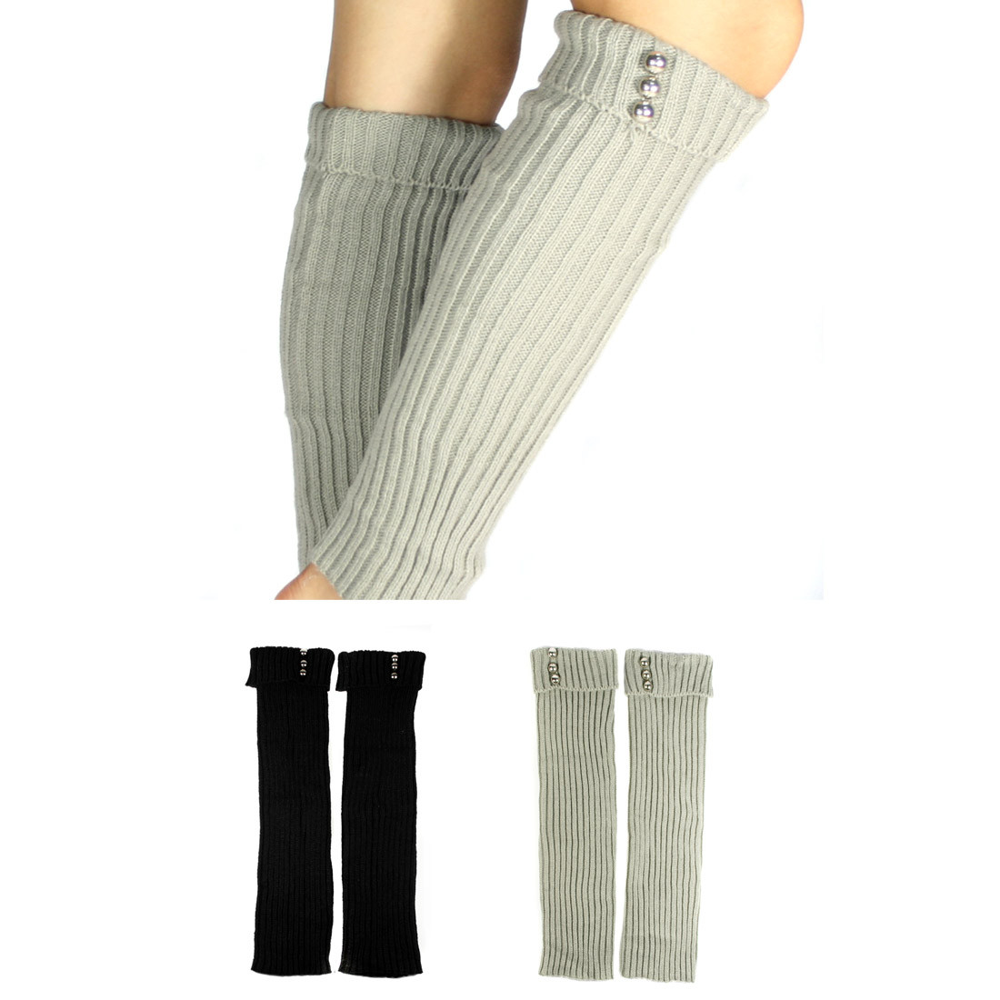 kilofly Leg Warmers with three silvertone studs have a comfortable stretch in both the length and width for a good fit. Made of soft cotton, the leg warmers can slouch or fully extend to match your outfit as your wish, while keeping your legs warm. Washing Instructions: Machine wash cold with like colors. Do not use chlorine bleach. Dry on low to medium setting. This value pack includes 2 pairs in different colors.