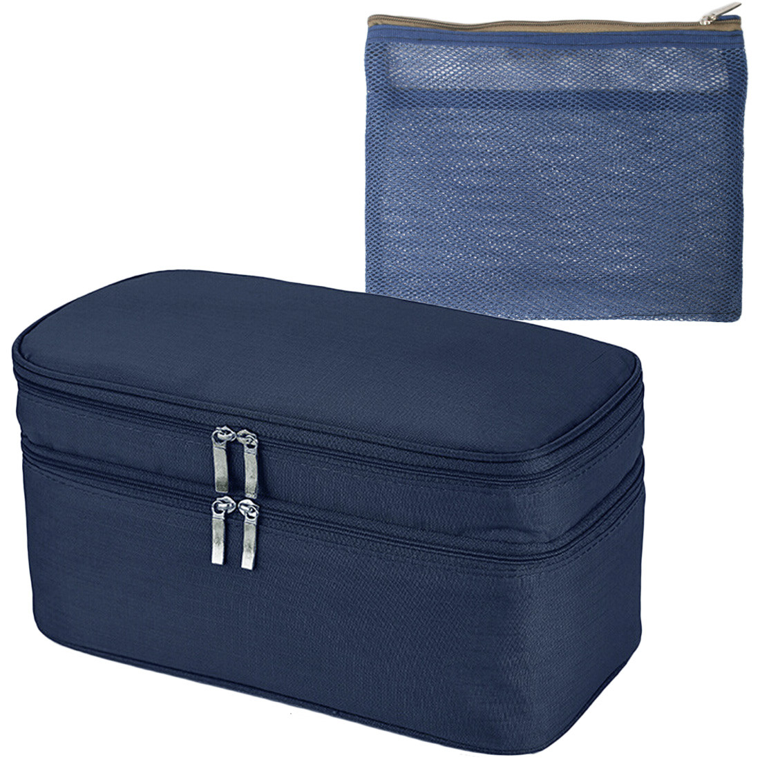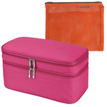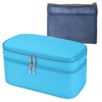kilofly Portable Travel Lingerie Storage Bag is perfect for organizing your underwears essentials in one single bag. It is made of durable and waterproof nylon fabric. Two main zipper compartments with multiple slots and pockets are ideal for your lingeries, cosmetics, toiletries, etc.